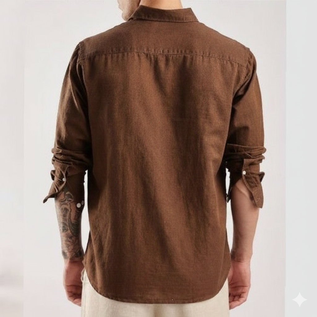 Crafted from breathable linen fabric, this solid long-sleeve shirt offers all-day comfort and timeless style. Perfect for both casual and semi-formal wear.