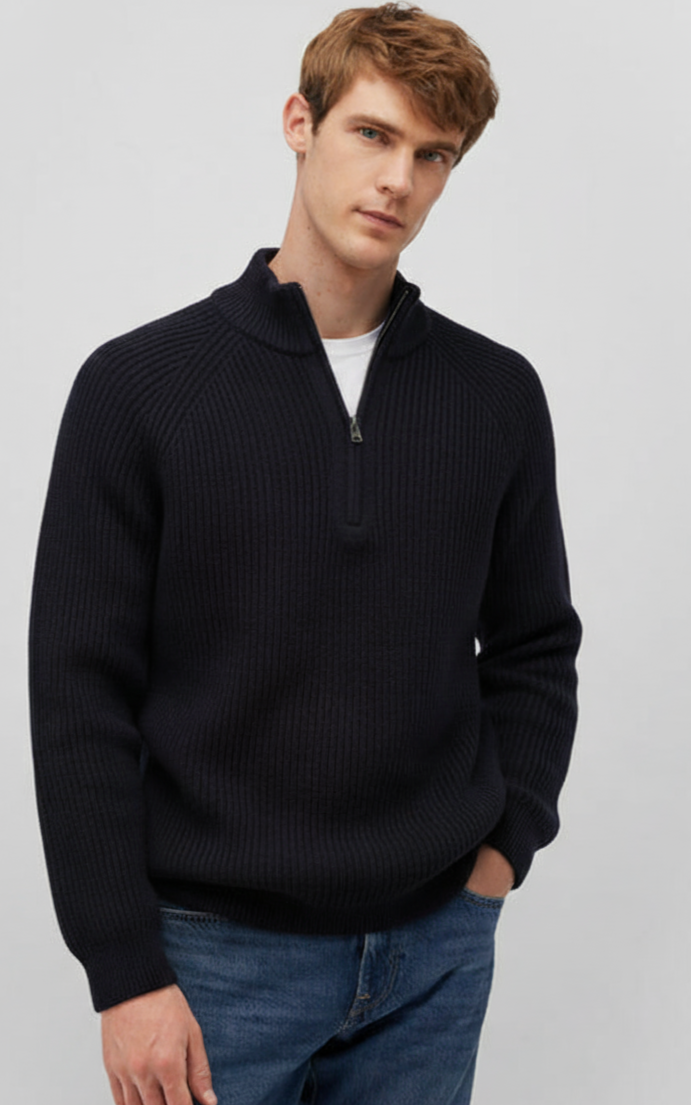 hort dress in a soft rib knit with a turtle neck, zip at the top, low dropped shoulders and long sleeves. Narrow ribbing around the neckline and cuffs and a straight hem.